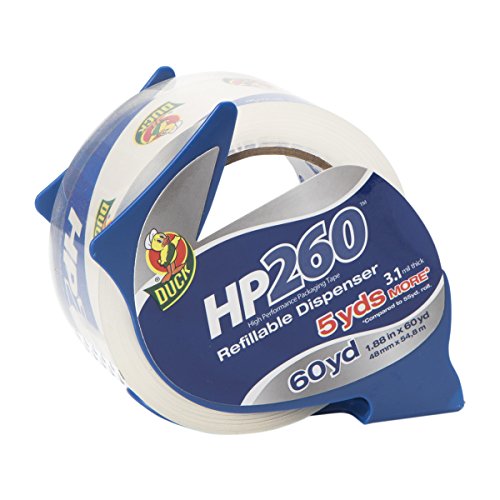Duck HP260 Packing Tape with Dispenser, 1.88 Inch x 60 Yard, Clear, 1 Roll (393186)