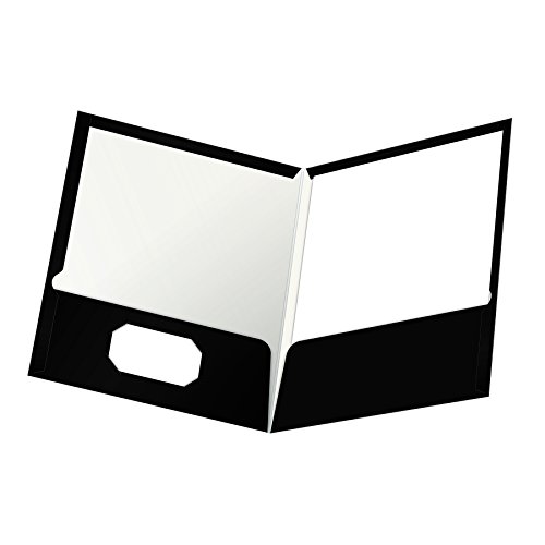 Oxford Laminated Twin-Pocket Folders, Letter Size, Black, Holds 100 Sheets, Box of 25 (51706EE)