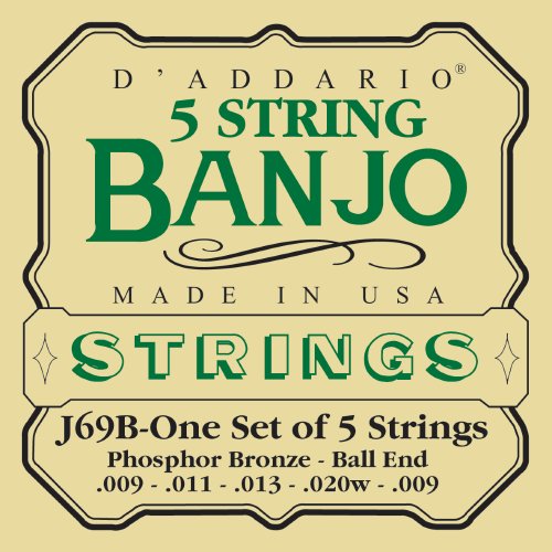 D'Addario J69 5-String Ball-End Banjo Strings, Phosphor Bronze, Light, 9-20