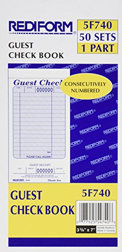 Rediform Guest Check Pad, White, 3.375 x 7 Inches, 50 Forms (5F740)