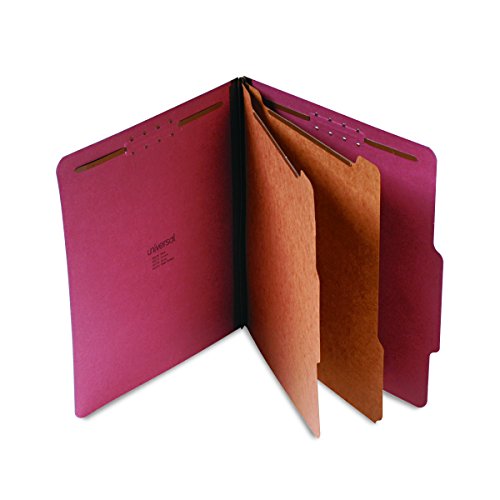 Universal Pressboard Classification Folder, Letter, 6-Section, Red, 10/Box