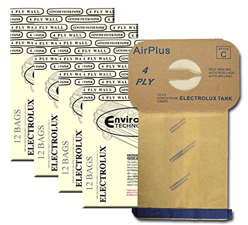 EnviroCare Style C 48 Electrolux Type C Tank Model Vacuum Cleaner Bags 4 Ply, tan