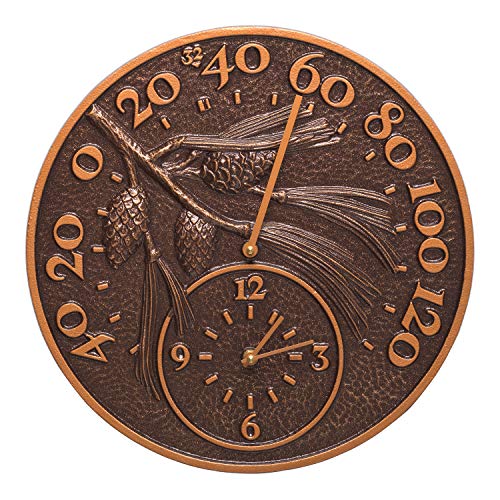 Whitehall Products 01789 Pinecone Thermometer Clock Combo