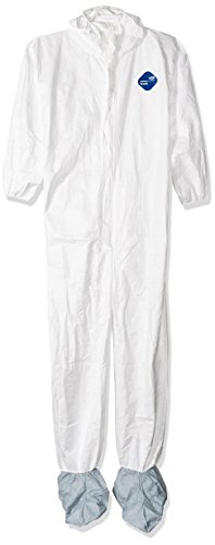 DuPont TY122S Disposable Elastic Wrist, Bootie & Hood White Tyvek Coverall Suit 1414, Large