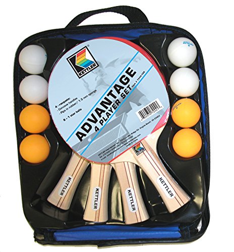 Kettler Advantage Indoor Table Tennis Bundle: 4 Player Set (4 Rackets/Paddles and 8 Balls)