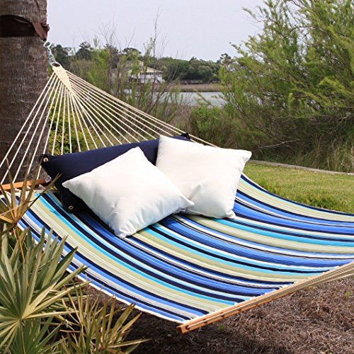 Pawleys Island Gardens Collection Large Quilted DuraCord Fabric Hammock, Trellis Stripe