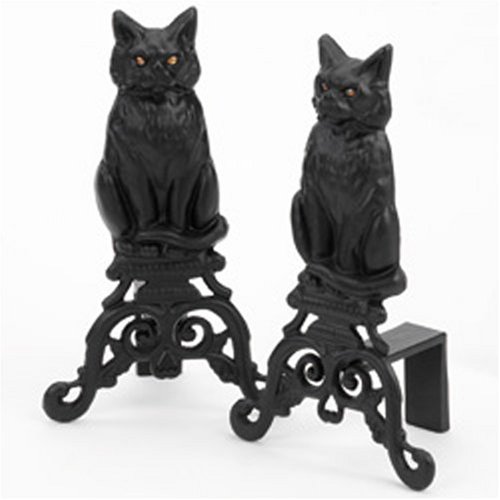 PAIR of BLACK CAT Andiron Fireplace Hearth Fire Dogs - CAST IRON