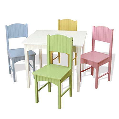 KidKraft Nantucket Kid's Wooden Table & 4 Chairs Set with Wainscoting Detail - Pastel