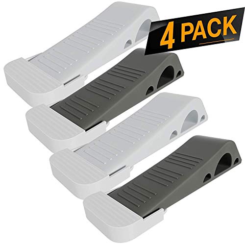 iCooker 4 Pack Door Stopper [RELIABLE AND PRACTICAL] Works with ALL FLOOR SURFACE TYPES [EASY INSTALL HINGES WITH BONUS HOLDERS]