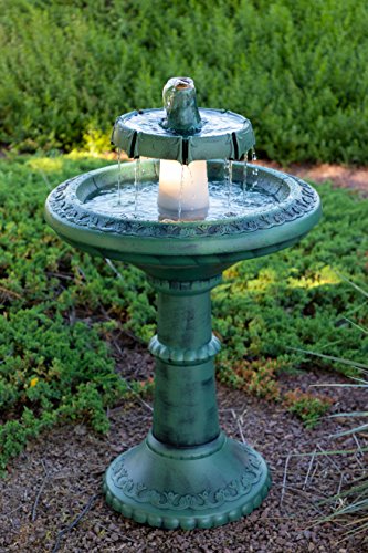 Alpine Two Tier Classic Garden Water Fountain, Dark Verdigris Green Finish, 37 Inch Tall