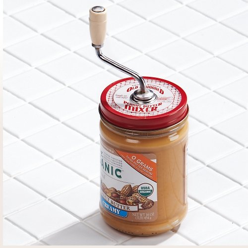 Grandpa Witmer’s Old Fashioned Mess-Free Nut Butter and Natural Peanut Butter Mixer, Made in America, BPA Free, Fits 16-Ounce Jars with 3-Inch Lids