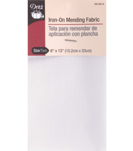 Dritz 55120-9 Mending Fabric, Iron-On, White, 6 x 13-Inch