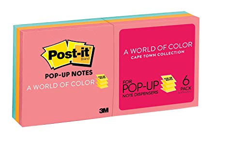 Post-it Pop-up Notes, America’s #1 Favorite Sticky Note, 3 in x 3 in, Cape Town Collection, 6 Pads/Pack (R330-AN)
