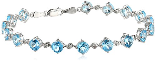 14K White Gold Blue Topaz Round with Diamond Bracelet, 7.25"