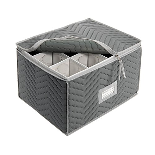 Richards Homewares Micro Fiber Deluxe Twelve Section Stemware Chest-Grey (7093)