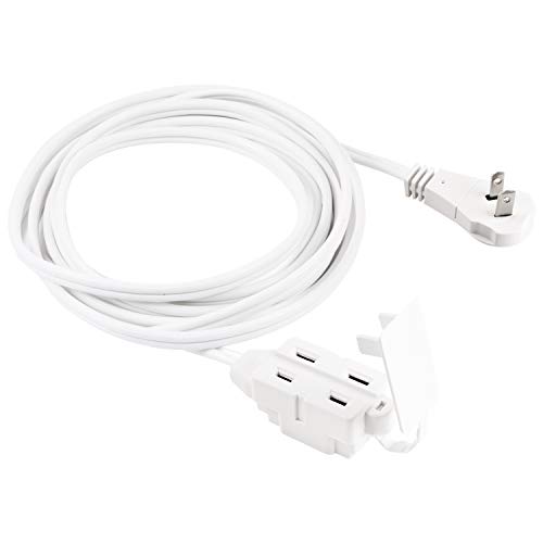GE 6 Ft Long, 3 Power Strip, Flat Plug, 2 Prong, 16 Gauge, Safety Outlet Cover, Indoor Rated, Perfect for Office, Home or Kitchen, UL Listed, White, 50360 Extension Cord,