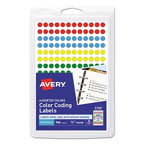 Avery Removable Color Coding Labels, 0.25 Inches, Assorted, Round, Pack of 768 (5795)