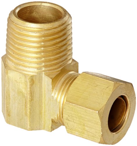 Anderson Metals 50069 Brass Compression Tube Fitting, 90 Degree Elbow, 3/8" Tube OD x 3/8" NPT Male Pipe
