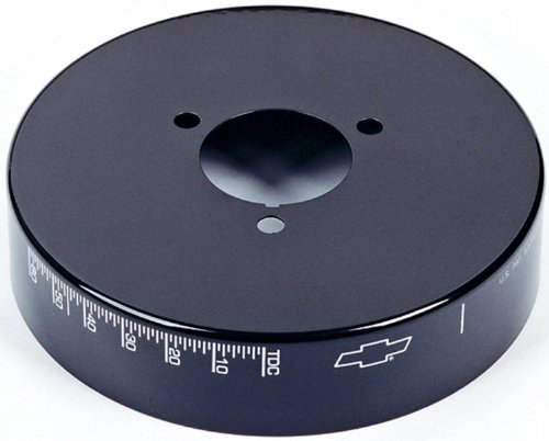 GM Specialty 141728 Harmonic Balancer Cover 8.0" Black w/Bowtie Logo for 1955-2004 Chevrolet Small Block V-8