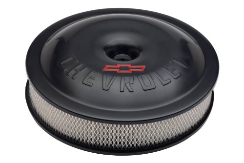 Proform 141-692 Black Anodized 14" Diameter Aluminum Air Cleaner Kit with Chevrolet/Red Bowtie Logo and 3" Paper Filter