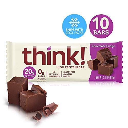 think! (thinkThin) High Protein Bars - Chocolate Fudge, 20g Protein, 0g Sugar, No Artificial Sweeteners, Gluten Free, GMO Free*, 2.1 oz bar (10Count - packaging may vary)