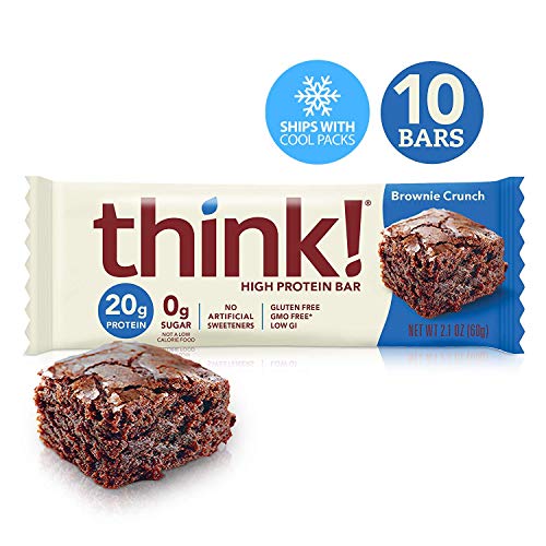 think! (thinkThin) High Protein Bars - Brownie Crunch, 20g Protein, 0g Sugar, No Artificial Sweeteners, Gluten Free, GMO Free*, 2.1 oz bar (10Count-Packaging May Vary)