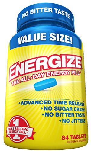 Energize Caffeine Energy Pills - Healthy Focus Brain Supplement - Improve Performance, Increase Alertness and Clarity - Smooth All Day Energy, No Jitters, No Crash - 84 Time Released Tablets