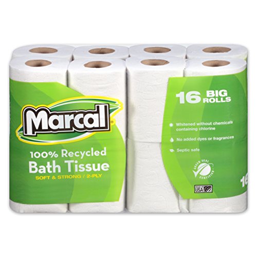 Marcal Toilet Paper 100% Recycled - 2 Ply White Bath Tissue, 168 Sheets Per Roll - 16 Big Roll Green Seal Certified Toilet Paper 16466