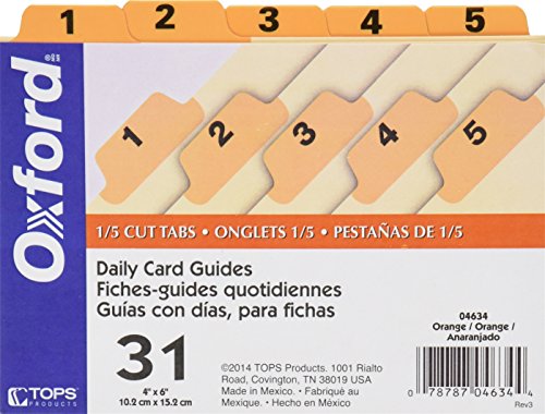 Oxford Index Card Guides with Laminated Tabs, Daily (1-31), 4" x 6" Size, Orange, 31 Guides per Set (4634)