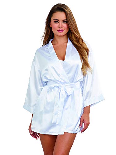 Dreamgirl Women's Shalimar Charmeuse Babydoll with Robe and Padded Hanger, White, Medium
