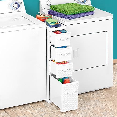 Wicker Laundry Organizer Between Washer Dryer Drawers