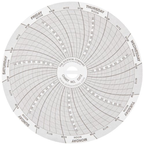 Dickson C012 Circular Chart, 4"/101mm Diameter, 24-Hour Rotation, 0/100 Range (Pack of 60)