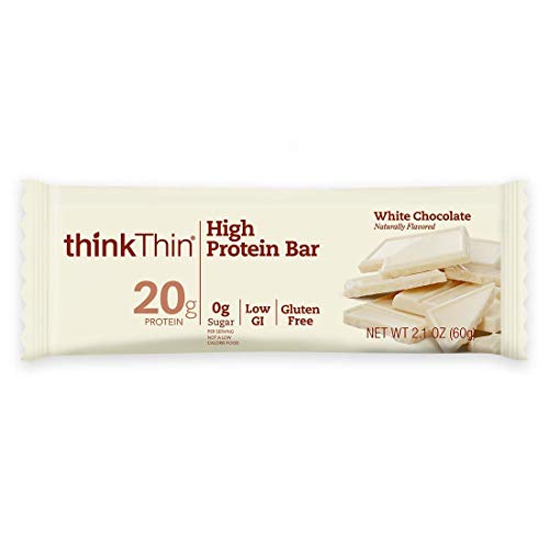 thinkThin High Protein Bars - White Chocolate, 20g Protein, 0g Sugar, No Artificial Sweeteners, Gluten Free, GMO Free*, Best Nutritional Snack/Meal bar, 2.1 oz bar (10Count)