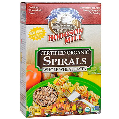 Hodgson Mill Organic Whole Wheat Spiral Pasta, 10-ounce Boxes (Pack of 8), Whole Grain Pasta, Wholesome and Delicious with Tomato Sauce, Health Conscious Substitute for Refined White Pasta