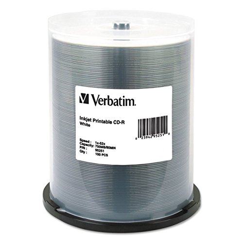 Verbatim CD-R 700MB 52X White Inkjet Printable Recordable Media Disc - 100pk Spindle