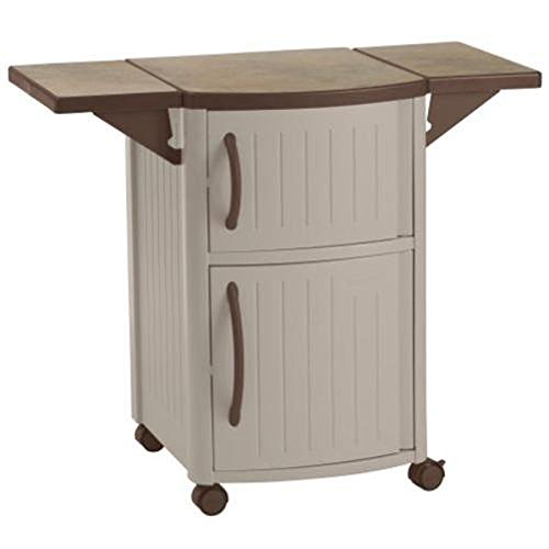 Suncast Outdoor Grilling Prep Station - Portable Outdoor BBQ Entertainment Storage Table Prep Station - Store Grilling Accessories, Condiments - Taupe and Brown