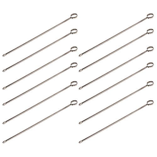 DELIGHTBOX UPI New Long Stainless Steel, Barbecue, BBQ, Shish Kebab Kabob Skewers, Ring-Tip Handle, 1 Dozen, 12" L