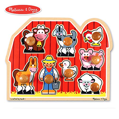 Melissa & Doug Large Farm Jumbo Knob Puzzle, Colorful Farm Artwork, Extra-Thick Wooden Construction, 8 Pieces, 1.5” H x 12” W x 15.5” L
