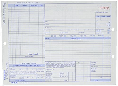 Rediform Auto Repair Polypack, Carbonless, 3 Part, 8.5 x 11 inches, 50 Forms (4P487)