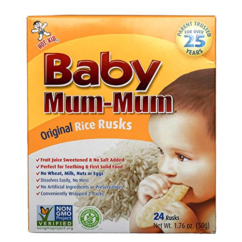 Hot-Kid Baby Mum-Mum Rice Rusks, Original, 24 Pieces (Pack of 6) Gluten Free, Allergen Free, Non-GMO, Rice Teether Cookie for Teething Infants