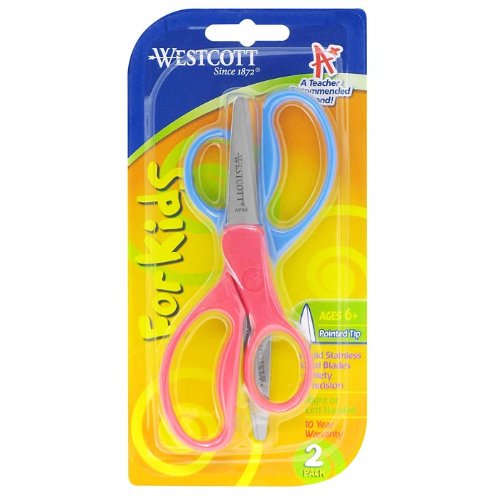 Westcott Kids Value Scissors, Pointed, 5-Inch, Color Varies, 2-Pack (13132)