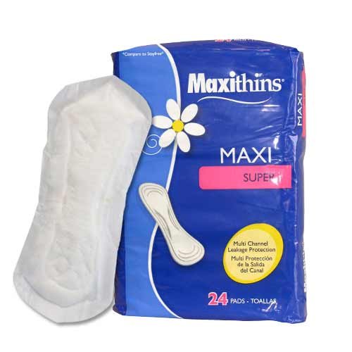 Hospeco MT48054 Maxithins Individually Wrapped Super Maxi Sanitary Napkins, 12 Packs of 24 pads, 288 Total Napkins