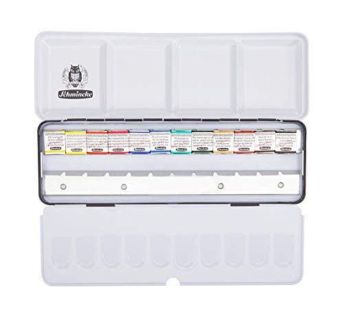 Schmincke Horadam Aquarell Half-Pan Paint Metal Set with 12 Open Spaces, Set of 12 Colors (74412097)