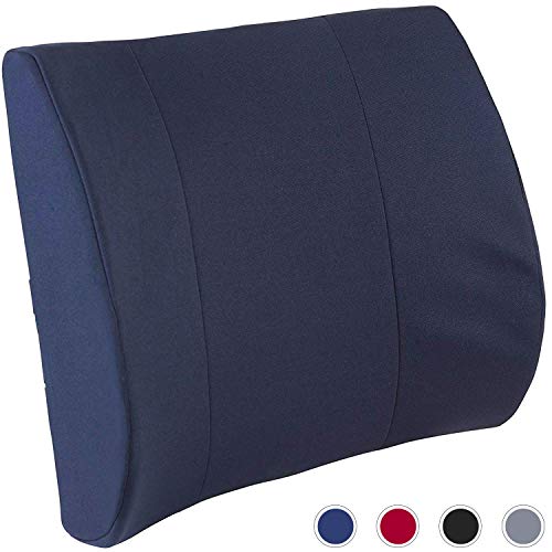 DMI Lumbar Support Pillow for Office or Kitchen Chair, Car Seat or Wheelchair Comes with Removable Washable Cover and Firm Insert to Ease Lower Back Pain and Discomfort While Improving Posture, Navy