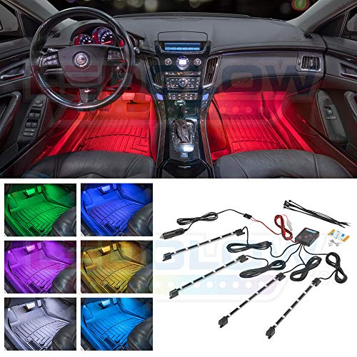 LEDGlow 4pc Multi-Color LED Interior Footwell Underdash Neon Light Kit for Cars & Trucks - 7 Solid Colors - 7 Patterns - Music Mode - Auto Illumination - Universal - Includes Cigarette Power Adapter