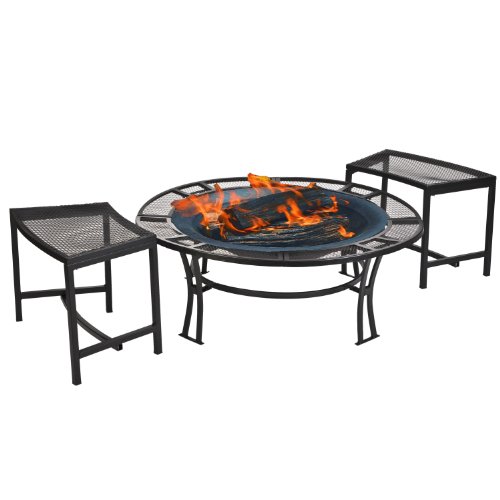CobraCo Steel Mesh Rim Fire Pit and Two Bench Set with Screen and Cover FB6400-750