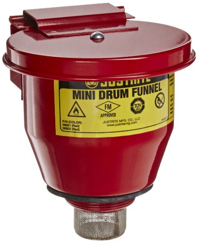 Justrite 08201 Steel Small Safety Drum Funnel with Self Closing Cover, 1 qt Capacity, 4-1/2" Diameter x 4-1/2" Height, for 5 Gallon Steel Pails with 2" NPT