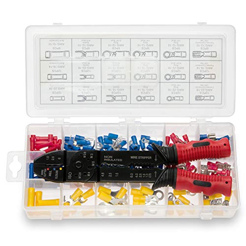 Neiko 50413A Insulated Wire Terminals and Connectors Assortment with 3-in-1 Wire Stripper, Cutter and Crimper Tool | 175-Piece Set