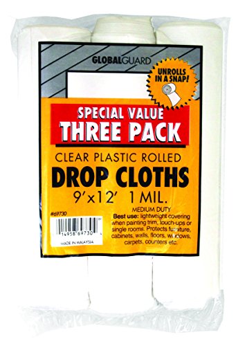 Premier 9' x 12' 1 MIL Clear Plastic Drop Cloth Rolled, 3 Pack, 69730