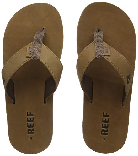Reef Men's Sandals Leather Smoothy | Classic Leather Beach Flip Flop with Woven Strap and Arch Support, Bronze Brown, 11